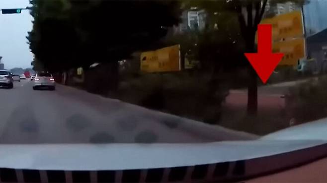 그런데 갑자기 도로 한중간 횡단보도에서 목줄이 풀린 개가 뛰어 왔고, 깜짝 놀란 운전자는 충돌을 피하기 위해 브레이크 페달을 밟으면서 오른쪽으로 핸들을 틀었습니다.