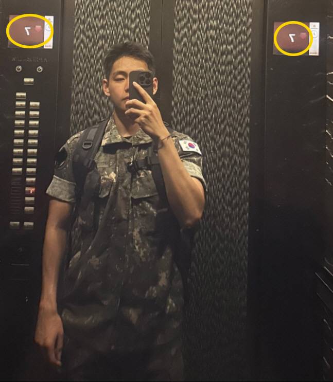 방탄 뷔, 엘리베이터에서 '군복 셀카' 찍은 이유