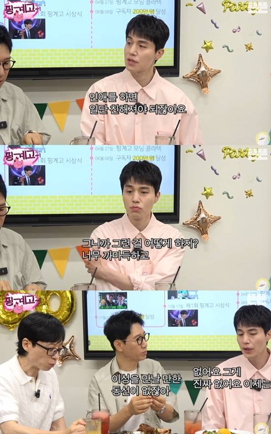 이동욱은 웹예능 '핑계고'에 출연해 "이제 연애를 못할 거 같다. 너무 귀찮다. 연애하면 일단 친해져야한다. 그런 걸 어떻게 하지? 너무 까마득하다"고 고백했다.