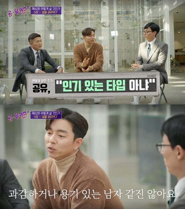 이 밖에도 tvN '유 퀴즈 온 더 블럭'에서 공유는 "제가 여자들이 좋아할 타입은 아니다"라며 "사랑 앞에서 과감하거나 용기 있는 남자 같지는 않다"고 털어놨다.