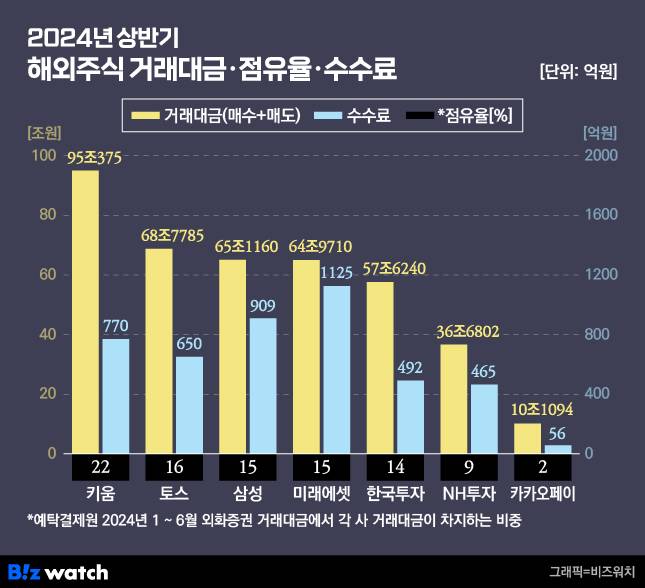 다만 두 회사는 아직 국내 주식 중개에서는 약한 모습이다. 토스증권의 상반기 국내주식 중개 수수료는 99억원, 카카오페이증권은 20억원이다.