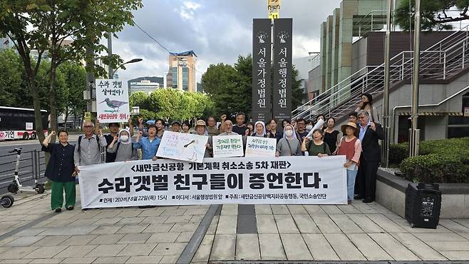 | ▲ 지난 8월 22일 서울행정법원 앞에서 열린 수라갯벌 친구들의 증언 마당 |