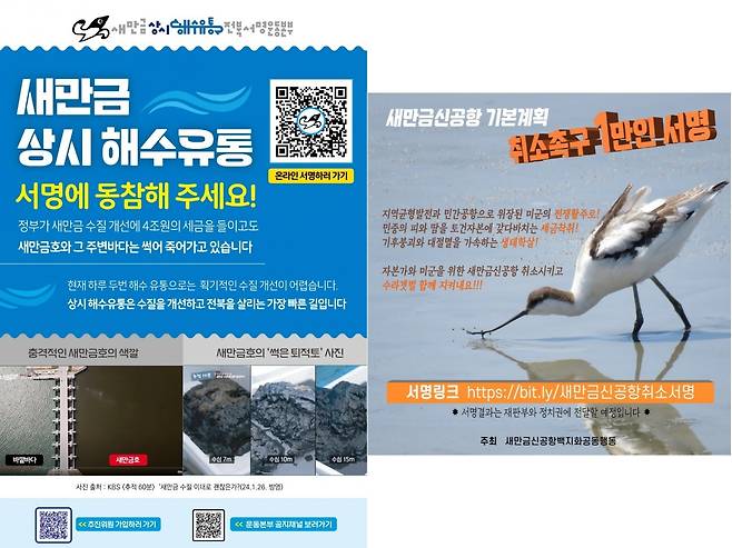 | ▲ 새만금호 상시 해수유통과 신공항 기본계획 취소 서명 운동 포스터 |