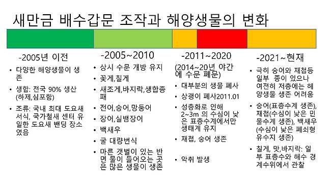 | ▲ 새만금 이후 서식 생물의 변화 |