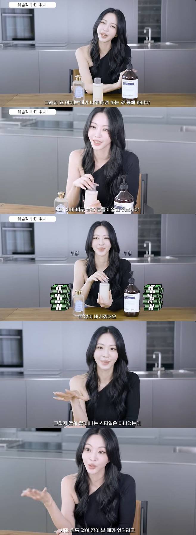 바디워시를 소개한 한예슬은 "합리적인 가격에 대용량. 너무 마음이 편하다"며 "중간 가격대 제품은 너무 작다. 대용량으로 만들어줬으면 좋겠다. 이 향은 핸드워시로도 많이 세팅을 해놓는데 오는 손님마다 이거 어디 거냐 한다. 디퓨저부터 시작해서 얼마 전에 핸드워시, 바디워시, 바디로션 론칭을 한 거 같은데 돈 많이 버시겠다. 부럽다"고 속내를 드러냈다.