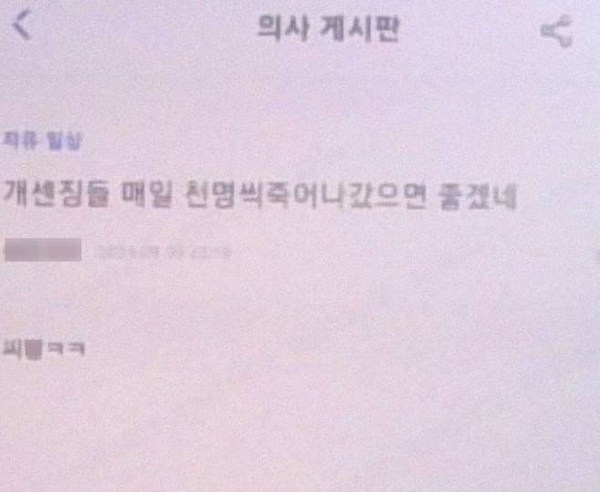 - "개XX들 하루 천명씩 죽어나갔으면"…의사 게시판 글 '충격'