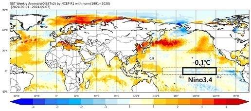 세계기상기구(WMO)도 이날 발표한 엘니뇨·라니냐 전망에서 9∼11월 중 엘니뇨가 발생할 가능성이 0%, 중립이 45%, 라니냐 발생 가능성이 55%라고 밝혔다.