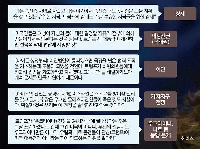 해리스 ‘비웃음’ 도발에… 트럼프, 미간 찌푸리며 ‘발끈’ [美 대선 TV토론]