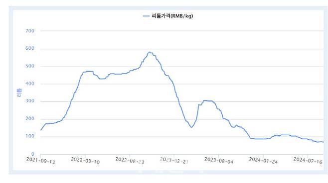 11일 한국자원정보서비스(KOMIS)에 따르면 10일 리튬을 정제한 탄산리튬 가격은 kg당 69.5위안화를 기록했다. 2022년 11월 고점에서 무려 88% 하락했다. 이에 신재 대비 재활용 소재의 가격 경쟁력도 크게 떨어졌다. 리사이클링 신규 진입 업체들이 늘어나면서 피드스탁(폐배터리) 확보는 어려워지고 메탈 가격 하락으로 재활용 소재의 가격적 매력이 줄어들게 됐다.