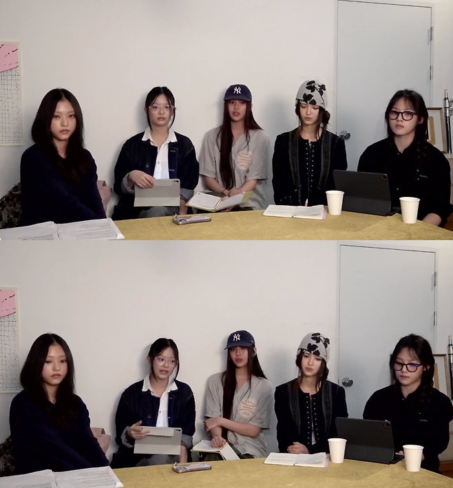 뉴진스는 지난 11일 오후 유튜브 채널을 통해 라이브 방송을 진행했다. 민지, 하니, 다니엘, 혜인, 해린이 어두운 모습으로 카메라 앞에 섰다. 약 30분간 자신들의 입장을 전했다.