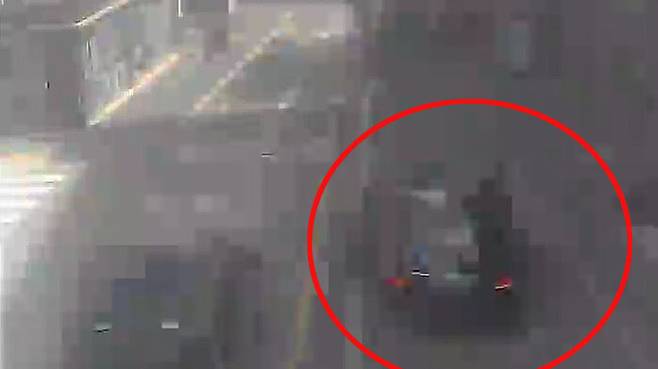 폐쇄회로(CC)TV를 보면 화소가 떨어져 명확한 식별은 어렵지만, 벤츠 차량이 사고 현장 직전 10m 이상 되는 거리를 인도 위로 달리는 모습이 찍혀 있습니다.