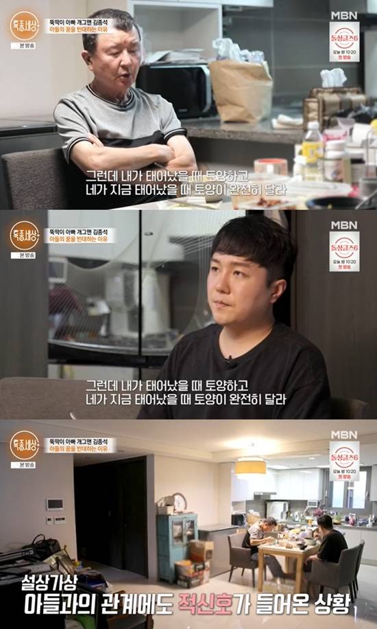 아들은 "알아서 하겠다"고 했지만, 김종석은 "네가 지금 30년 넘게 해볼 수 있는 걸 해봤잖아. 안 됐지 않나. 이제 그걸 털고 아빠가 이야기하는 걸 따라가 보라는 말이다. 네가 요즘 돈 벌 수 있는 걸 알아보고는 있냐. 안 되면 3호점에 와서 기술을 배워라. 일찍 일어나서 그 사람들이 얼마나 부지런히 사는지 느껴봐라"고 잔소리를 그치지 않았다.