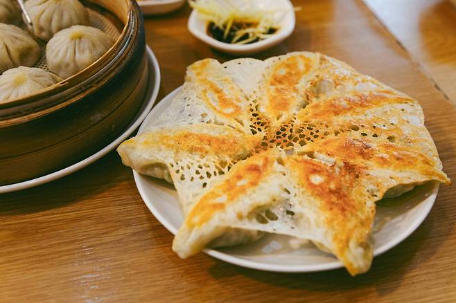 메뉴판부터 믿음이 간다. 메뉴 수에 연연하지 않고 만두 3가지, 면 요리 1가지에 집중하고 있다. 꽉 찬 만두소와 전분물로 만든 바삭바삭한 날개를 특징으로 한 빙화만두, 중국 특유의 풍미가 담긴 샤오롱바오(육즙만두), 부드러운 만두피와 깔끔한 육수로 한 끼 식사로 적합한 훈툰탕(만두탕), 옥수수면의 쫄깃한 식감과 매콤한 양념이 조화를 이룬 옥수수비빔면이 준비돼 있다. 만두를 베어 물면 맛있는 육즙이 콱 쏟아진다. 꽤 뜨겁긴 때문에 한 김 식혀 먹어야 하고, 샤오롱바오에는 생강과 초간장을 곁들이면 맛과 향이 더 풍성해진다. 씹는 맛이 좋은 만두피와 고소한 만두소, 육즙이 어우러진 훌륭한 만두다. 산본 주민의 추천으로 방문해 기대가 컸음에도 100% 이상의 만족감을 느꼈다.