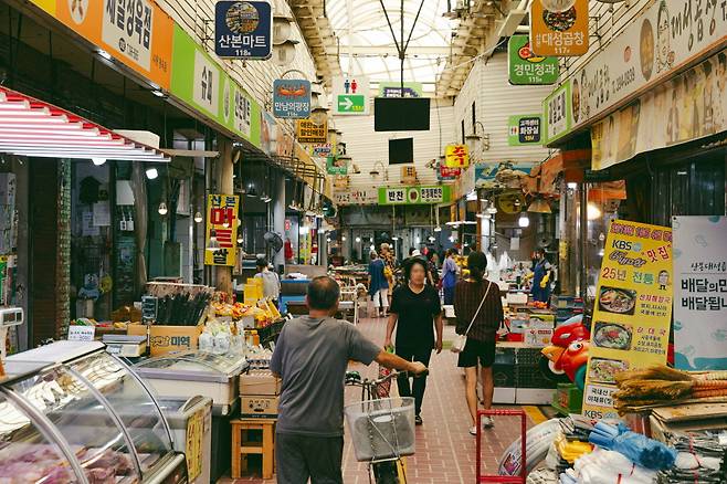 1985년에 상설시장으로 개설돼 벌써 40년 가까이 자리를 지킨 시장이다. 군포 최대 규모의 전통시장으로 여전히 군포의 부엌을 자처하고 있다. 200여 개의 점포가 있는데, 꽤 알차게 채워져 있고, 환경도 쾌적한 편이다. 정육점과 수산물, 청과 등에서는 전국에서 올라온 갖가지 식재료를 판매하고, 다양한 음식을 즐길 수 있는 식당도 군데군데 있다. 또 잡화, 의류, 한약재 상점, 아시아 마트, 다이소까지 이곳에서 구할 수 없는 건 없어 보인다.