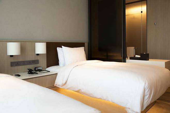 호텔의 첫인상은 깔끔함이다. 금정역 일대에서 가장 말끔한 인테리어를 자랑하고, 공간의 규모가 작은 대신 가구와 소품 등에 힘을 썼다. 로비 겸 투숙객의 휴식처인 AC 라운지는 상아색의 부드러움과 편안함을 담았다. 객실은 약 26제곱미터(프리미엄룸 기준)로 2명이 투숙하기에 부족함이 없고, 침구가 특히 아늑하다. 호텔의 시그니처 서비스인 라벤더 향 포푸리(말린 꽃 방향제)까지 곁에 두면 숙면이 보장된다. 벽면이 전명창이라 개방감이 좋고, 음식을 먹을 수 있는 큰 원형 테이블도 있다.