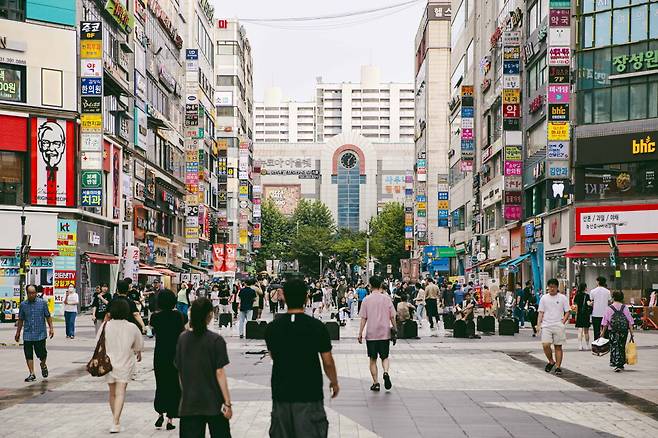 산본역 3번 출구로 나오면 로데오거리가 펼쳐진다. 조금은 과거의 향수가 느껴지는 요란한 간판들이 상가를 채우고 있다. 프랜차이즈 식당과 카페가 여럿 보이고, 대형 마트, 편의점, 노래방, 주점 등 다양한 성격의 공간이 옹기종기 모여 있다. 금요일부터 일요일까지는 꽤 붐비는 것 같다.