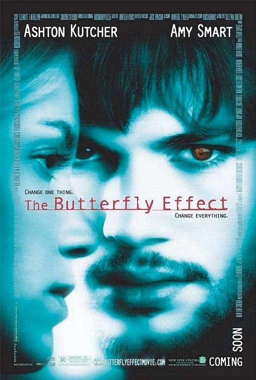 영화 어린 시절부터 단기 기억상실증에 시달리던 에반(애쉬튼 커쳐 분)이 7살 때부터 쓰던 일기를 통해 시공간을 이동해 미래를 바꾸는 이야기를 담은 영화다. 미래를 바꾸기 위한 에반의 노력은 '나비효과'로 인해 조금씩 어긋나고 주변 또는 자신에게 불행한 일을 초래한다. 에반은 현재의 불행한 일을 바꾸기 위해 또 다른 '나비효과'가 발생하는 줄도 모르고 시간 여행을 반복한다.