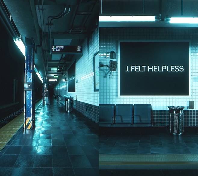 특히 벽면 광고판에 적힌 'I FELT HELPLESS(나는 무력감을 느꼈다)'라는 문구가 눈길을 끈다. 이는 평소 세븐틴이 보여준 밝고 긍정적인 에너지와 상반되는 의미라 궁금증을 자아낸다. 문장 속 알파벳이 마구 뒤섞이는 후반 장면 또한 팬들 사이에서 다양한 추측을 낳고 있다.