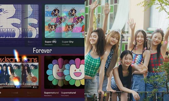 사진에는 뉴진스의 대표곡 'Super Shy'(슈퍼 샤이), 'How Sweet'(하우 스위트), 'Supernatural'(슈퍼 내추럴) 등이 담겼다.