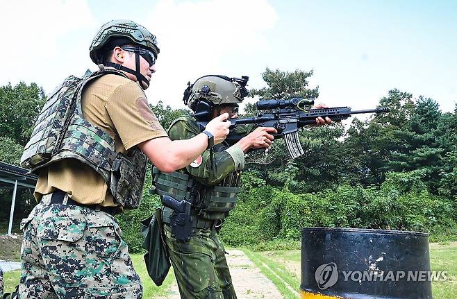 (서울=연합뉴스) 육군은 지난 9일부터 1주일간 국내외 저격수들이 참가한 가운데 우리 군 최초로 진행된 '제1회 국방부장관배 국제 저격수 경연대회(K-ISC)'가 대단원의 막을 내렸다고 13일 밝혔다. 사진은 인도네시아팀이 근거리 전투능력을 확인하기 위한 소총 속사사격을 실시하는 모습. 2024.9.13 [육군 제공. 재판매 및 DB 금지]