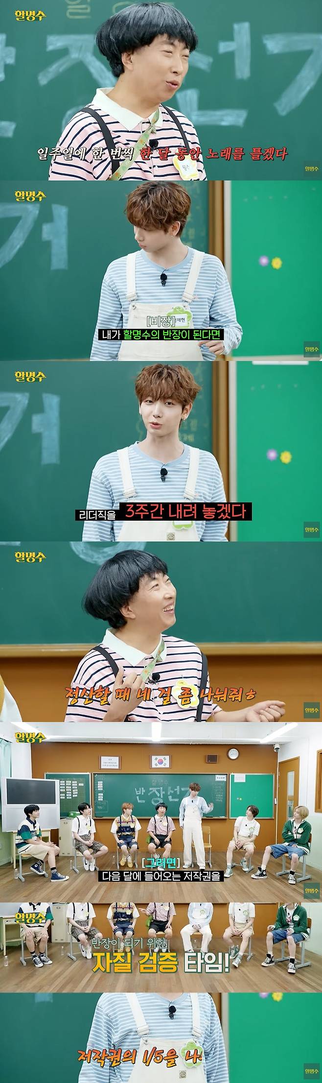 다음으로 윤학은 "제가 반장이 된다면 이 반을 아주 깨끗하고 규칙 있고 성실한 반을 만들겠다"며 순수한 모습으로 멤버들의 귀여움을 샀다.