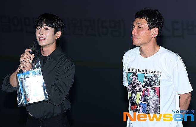 배우 정해인, 황정민이 9월 13일 오후 서울 용산구 CGV용산아이파크몰에서 열린 영화 ‘베테랑2’ 무대인사에 참석했다.