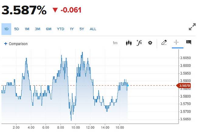 2년물 국채금리 3.59%로 뚝…달러도 약세로