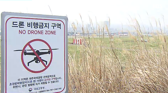 제주공항에선 지난해 3월 60대 남성 관광객이 비행금지구역에 속한 제주시 도두동 한 야외주차장에서 무단으로 드론을 띄웠다가, 공항 국내선 여객터미널 옥상에 추락시키는가 하면 같은 해 4월 드론 추정 물체가 시범 운영 중인 드론탐지시스템에 감지되면서 항공기 이착륙이 16분간 일시 중단되는 사태를 빚었습니다.