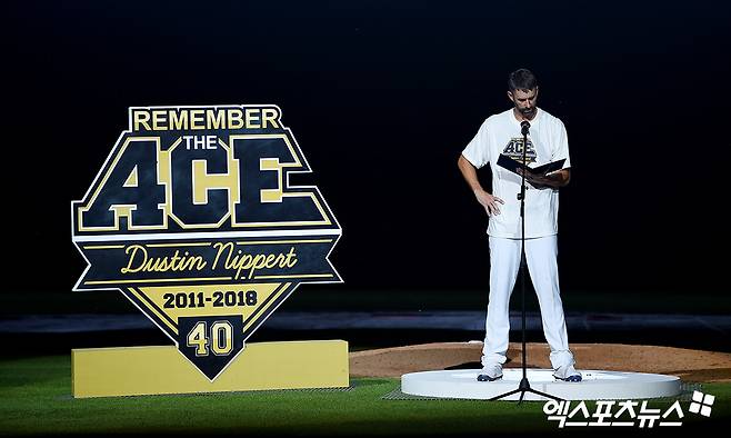 (엑스포츠뉴스 잠실, 김지수 기자) 두산 베어스의 레전드 더스틴 니퍼트가 구단의 배려 속에 성대한 은퇴식을 치렀다. 구단주까지 깜짝 현장을 방문, 팀을 위해 헌신했던 니퍼트를 격려하고 축하 메시지를 전했다.