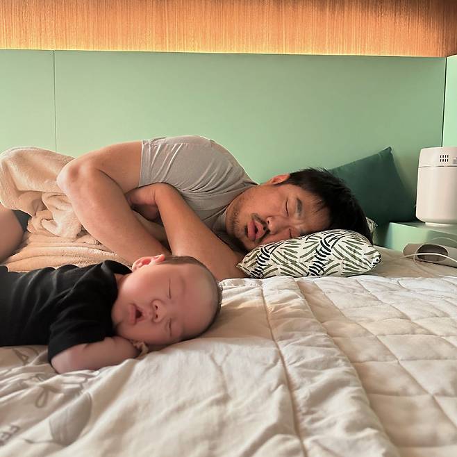 특히 그동안 부부가 SNS를 통해 아들의 모습을 공개한 뒤 강재준을 꼭 닮은 얼굴이 화제를 모았던 바. 자는 모습도 아빠를 꼭 닮아있었다.