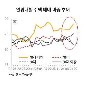 주요 주택 구매 연령대를 보면 40세 이하 거래비중이 크게 증가했다.