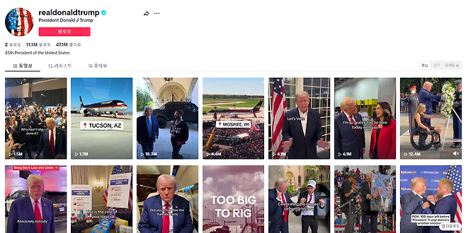 온라인 데이터 측정 회사인 젤프 분석에 따르면 해리스 측 게시물의 틱톡 조회수는 트럼프 측보다 1억뷰 이상 많다.