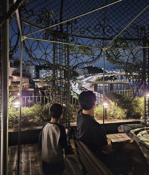 한가인인 지인의 집에서 가족들과 시간을 보내고 있는 모습. 남편 연정훈과 아들의 뒷모습을 카메라에 담으며 가족을 향한 애틋한 마음을 드러냈다.