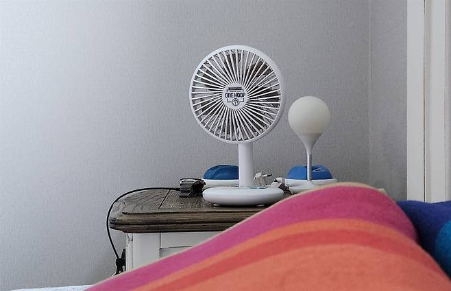 | ▲ 침대 옆 머리맡에 있는 휴대용 선풍기 처음에는 선풍기 소리가 귀에 거슬렸지만 어느날부터인지 들리지 않았다. |