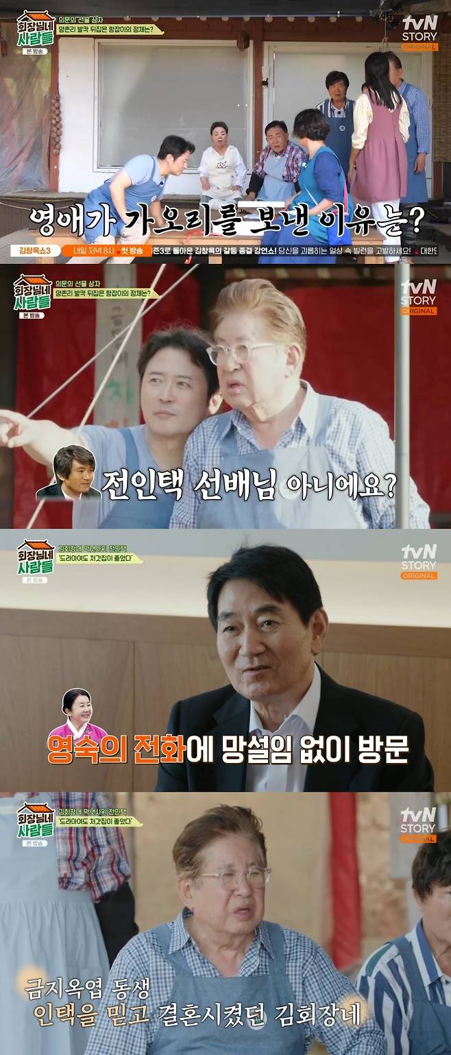 16일 방송된 tvN STORY '회장님네 사람들'(이하 '회장님네'의 최종회에서는 김회장네 장녀 영옥 역의 엄유신, 둘째 딸 영숙 부부 김영란과 임채무, 막내딸 영애 남편 역의 전인택이 방문해 풍성한 한가위를 보냈다.