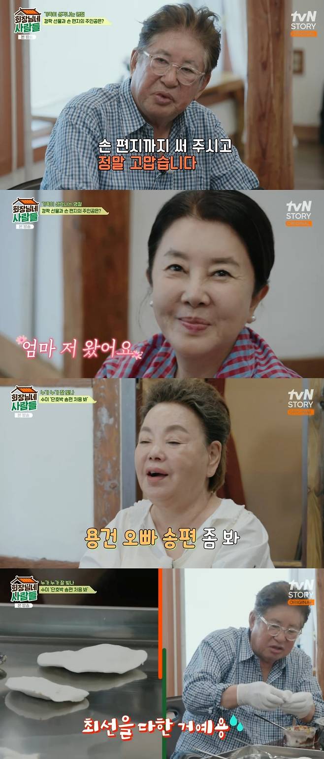 이를 본 김용건은 "더운 날씨에 촬영도 안 끝났을 텐데 손편지까지 써주셔서 감사하다"고 인사했고, 김영란은 "엄마가 없어서 섭섭하다. 엄마가 더위를 많이 타는 걸로 알고 있는데, 건강 조심하시고 즐거운 한가위 되세요"라고 그리움을 드러냈다.