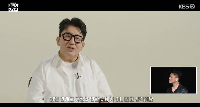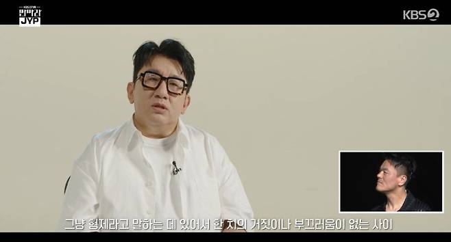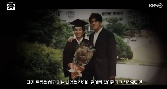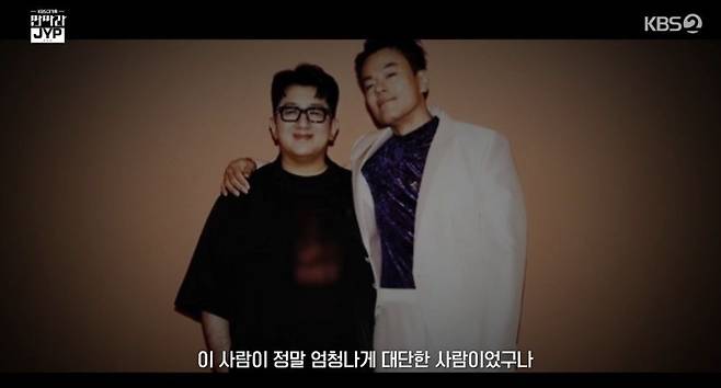 그는 또 "모든 후배들은 그 자리에 가보기 전엔 모른다. 내가 독립을 하고 그간 나는 형과 함께 사업을 했다고 생각했지만 사실은 형의 사업을 옆에서 도왔다는 걸 알게 되면서 이 사람이 정말 엄청나게 대단한 사람이라는 걸, 웬만한 인간은 해줄 수 없는 것을 내게 해줬다는 걸 느꼈다. 내가 그 자리로 갔을 때 나 역시 그런 결정을 내릴 수 있을까 싶더라"며 박진영을 향한 고마움을 전했다.