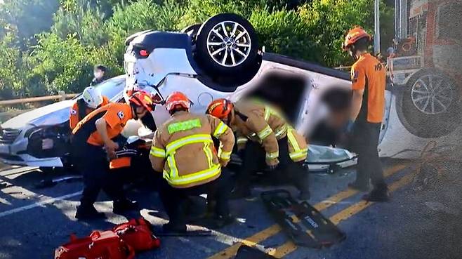 바로 옆 SUV 차량에서는 119 구급대원들이 탑승자들의 상태를 살핍니다.