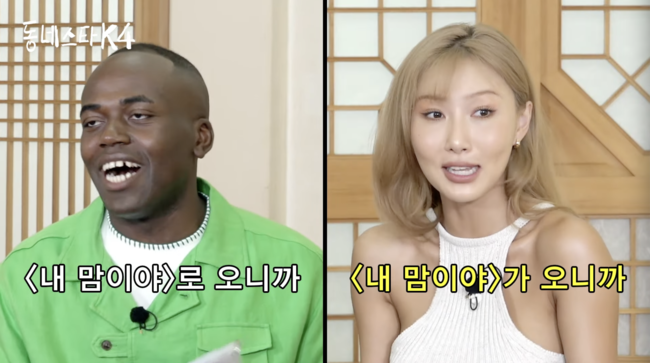 조나단은 “왜냐면 안한 게 아니고. 열심히 나름대로 했는데”라고 이해했고, 화사는 “그래서 대표님이랑 한바탕하고, 제가 작사를 열심히 했다. 제목은 ‘내 맘이야’. 근데 이제 대표님이 죄송합니다가 아니라 내 맘이야가 오니까. ‘얘 진짜 또라이구나?’해서 오히려 대표님이 저를 되게 좋아해주셨다”고 털어놨다.