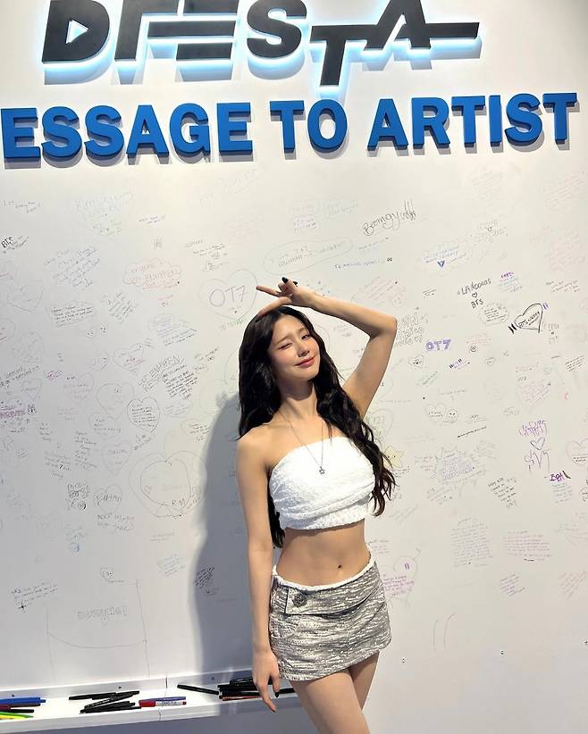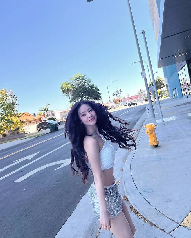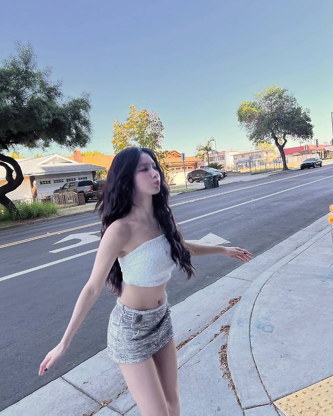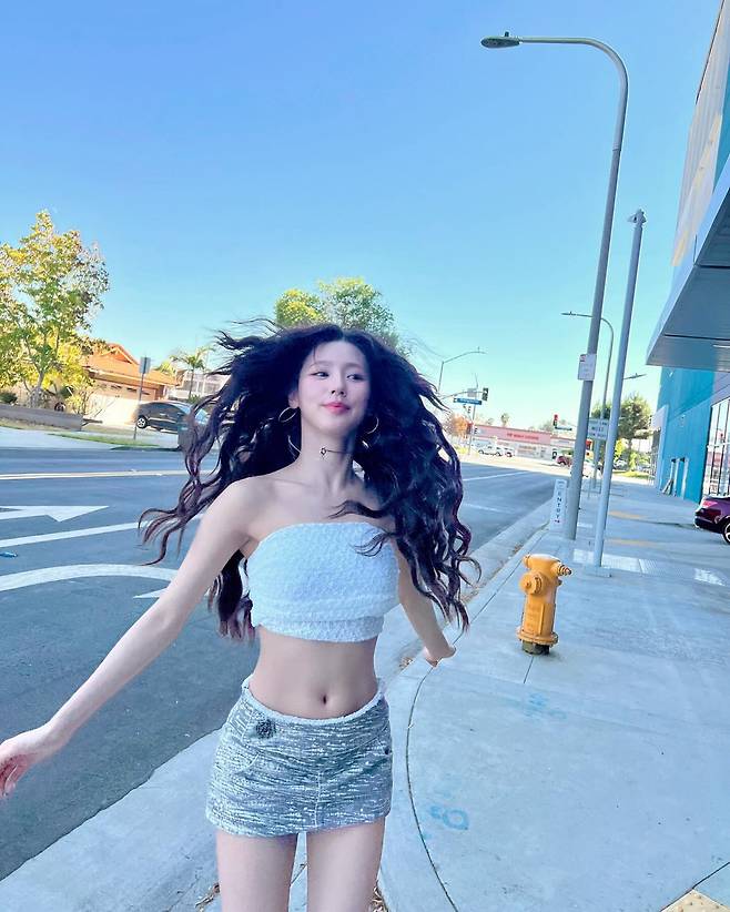 또 함께한 사진에서 그는 화이트 크롭탑에 그레이 컬러의 미니스커트를 매치해 패션센스를 자랑했다. 고스란히 드러난 복근과 백옥같은 피부가 시선을 강탈했다.