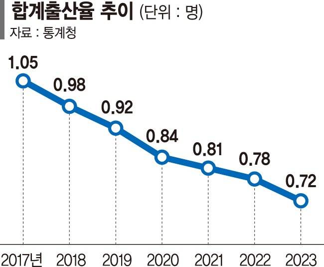 전문가들은 합계출산율이 0.72명에서 0.6명대로 주저앉을 가능성을 주시하고 있다. 출산, 육아, 난임치료 등 제도 확산을 위한 노력은 지속되고 있다.