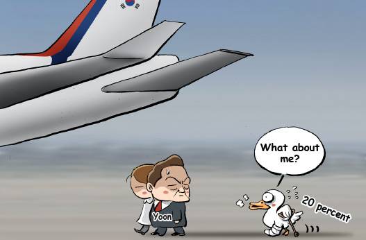 President Yoon Suk Yeol and first lady Kim Keon Hee embark on an official visit to the Czech Republic on Thursday to help cement the deal to build two nuclear reactors in the country. But the president’s abysmal approval rating at 20 percent in a recent Gallup Korea poll continues tormenting him at home, coupled with the deepening public antipathy toward the first lady who didn’t apologize for her suspicious acceptance of a luxury handbag from a mysterious pastor. [PARK YONG-SEOK]