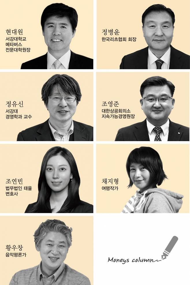 우선 경제와 산업계의 현안을 깊이있게 분석하고, 날카로운 대안을 제시하는 '머니S&VIEW' 필진으로 현대원 서강대학교 메타버스전문대학원장, 정병윤 한국리츠협회장, 조영준 대한상공회의소 지속가능경영원장이 참여합니다.