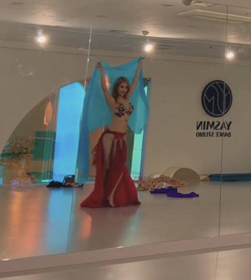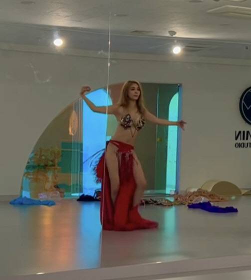 영상 속 옥주현은 섹시한 노출 의상을 입고 벨리 댄스를 추고 있는 모습.