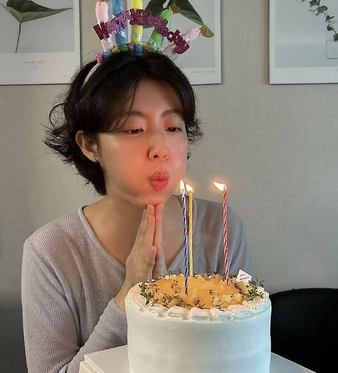 여기에 케이크 앞에서 박수 치는 모습까지 공개, 투명한 피부에 발랄한 매력까지 동안 비주얼을 과시하고 있다.