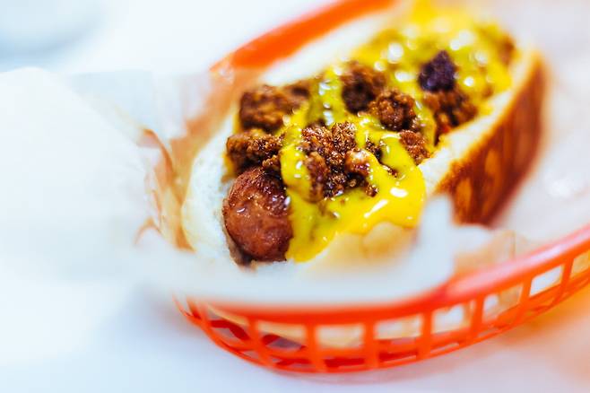 메뉴는 크게 3가지. 핫도그(6인치와 12인치)와 소다, 그리고 셰이크. 소다는 컵에 각종 시럽을 가득 뿌린 뒤 탄산수를 부으면 끝이다. 여기서 추가 주문하면 소다 위에 휘핑크림을 잔뜩 올려 준다. 핫도그는 소시지와 빵을 구워 머스터드와 케첩을 아무렇게나 휘갈겨 내면 완성이다. 간단한 조리과정만큼 직관적인 맛이다.