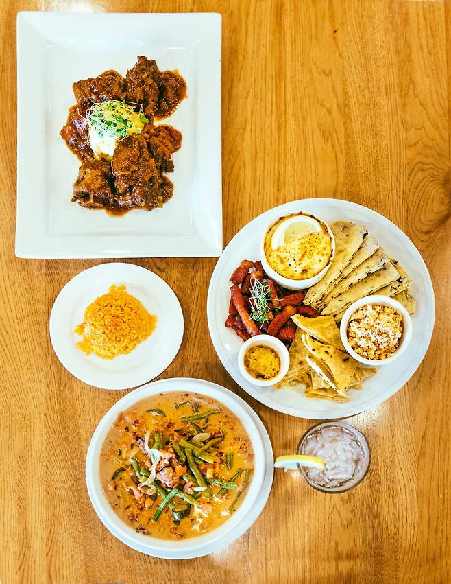 괌에서 여행자에게 단 한 곳의 레스토랑만을 소개해야 한다면 여길 뽑겠다. 가장 괌다운 음식을 내는 곳. 메스클라 차모로 퓨전 비스트로는 2009년 3월에 오픈했다. 올해로 무려 15년째 명맥을 이어오고 있는 셈이다. '메스클라'는 '혼합'을 뜻하는 스페인어, '메즈클라(Mezcla)'에서 따왔다. 차모로족인 피터 듀나스(Peter Duenas) 셰프가 주방을 이끄는데, 그는 괌에서 인기 있는 TV 시리즈인 <아웃도어 셰프>의 진행자이기도 하다. 편하게 만들 수 있는 현지 가정식부터 특별한 날에만 먹을 수 있는 차모로 전통요리까지 선택지가 다양하다. 점심과 저녁 메뉴를 별도로 운영하고 있다.