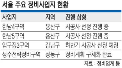올해 하반기 한강변을 축으로 한 한남4구역과 압구정3구역 등 서울 주요 재건축·재개발 정비사업지를 둘러싸고 대형 건설사 간 수주전이 본격화할 전망이다.