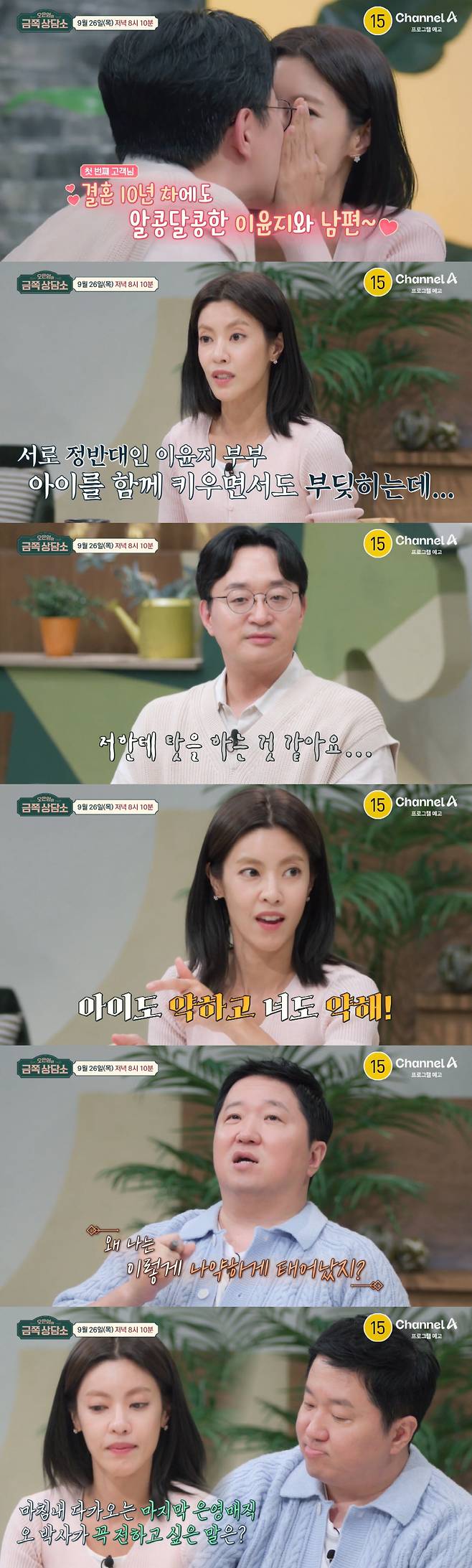 예고편에서 이윤지는 남편과 달달한 입맞춤을 나누며 결혼 10년 차에도 여전히 신혼 같은 모습으로 훈훈함을 자아냈다. 그러나 두 사람은 이내 정반대인 성격 때문에 갈등을 겪었음을 고백했다.