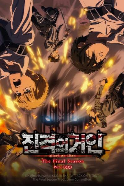 1기부터 4기, 그것도 3기와 4기는 방대한 분량과 세계관으로 인해 각 수가 둘로 나누어 편성돼 도합 8편의 작품이 TV 애니 <진격의 거인> 시리즈를 이룬다. 이중 대미를 장식한 4기는 'The Final Season' 파트 1, 2와 'The Final Season 완결편' 전편과 후편으로 나뉘었다. 이 모두 소위 질질 끌지 않고 완결성 있게 마무리하는, 요 근래 흔치 않은 엔딩을 보여줬다.